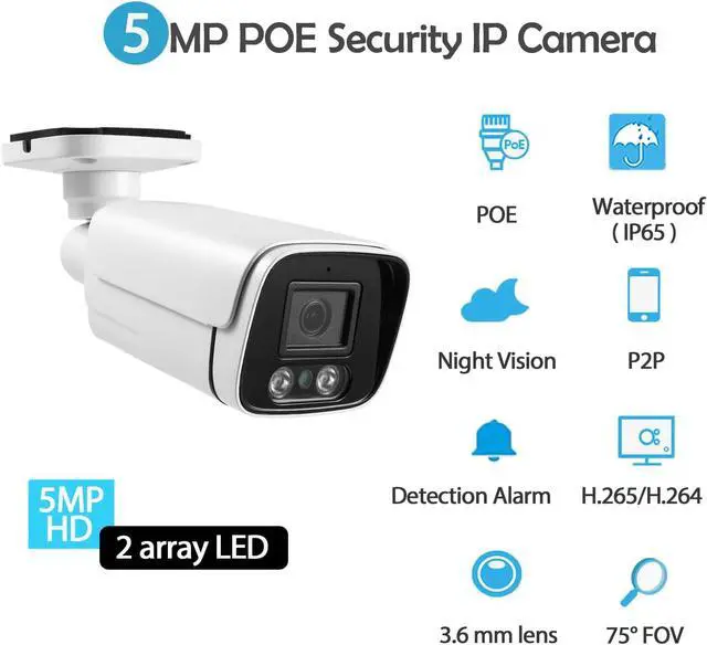HD 5MP(2880*1616P) Resolution This IP camera captures clear and smooth images/videos with a high resolution of 5.0 megapixels, allowing you to view detailed images with clearer images.