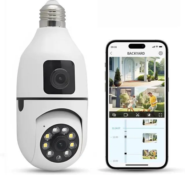 Easy to Intall & 24/7 Recording - Simply download the application, pair it with the E27 base and follow the instructions to connect the outdoor camera wireless. It also provides rolling cloud storage and