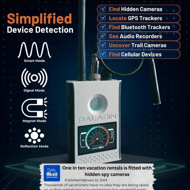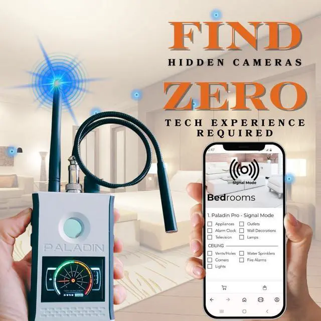Hidden Camera Finder: Finds both wired and wireless hidden cameras inside of hotel rooms, vacation rentals, bathrooms or any other sensitive location. This vacation neccesitsy