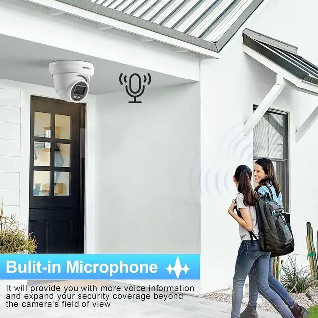 POE CAMERA OVERVIEW: This ultra HD 8MP 4K PoE camera captures clear video images, with a 2.8mm wide-angle lens offering a 110° field of view. It has a built-in microphone for one-way audio, IP67-rated metal housing that can withstand harsh weather, (NO SD Card Supported)