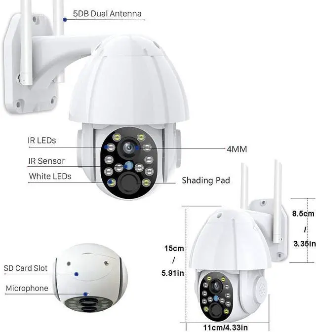 Color Night Vision CCTV Camera,Equipped with IR-Cut led lights, up to 20 meters night vision distance, so that you can get high quality video even at night.The smart IR-Cut filter switches automatically between day and night.
