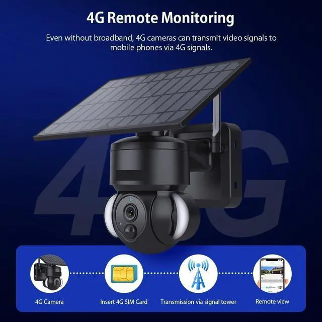 Whether you are at home, in the office, or far away, this camera supports 4G SIM card and WiFi dual connectivity for remote monitoring and seamless switching of network connections. Even if there is no WiFi coverage, just insert the SIM card, it can still run stably, allowing you to view surveillance videos anytime and anywhere through the mobile APP, and remotely control the Angle and function of the camera.