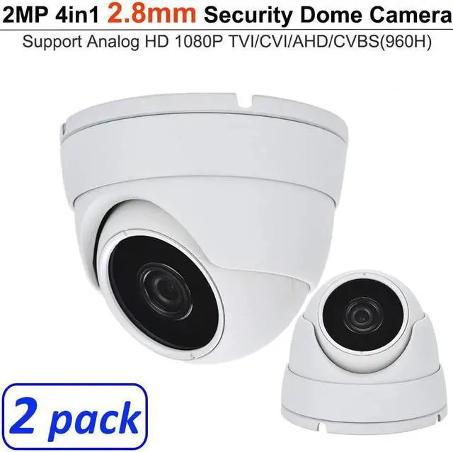 101AV 2MP 4in1 TVI/AHD/CVI/CVBS 2.8mm Fixed Lens Surveillance Dome Camera DWDR OSD menu Indoor Outdoor for CCTV DVR Home Office Surveillance Security (White) (2 Pack)