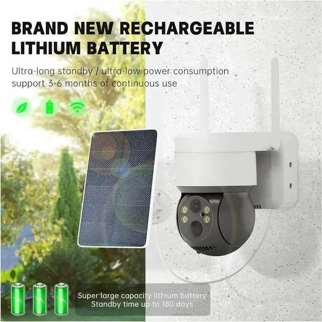 This surveillance camera has built-in solar charging function, no need to frequently replace the battery or access the power cord, greatly easier to install and maintain. Whether you install it on a balcony, yard or roof, as long as there is sunlight, it can provide its own continuous power. This eco-friendly and economical design not only saves electricity, but also eliminates the need for battery replacement.