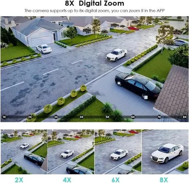 • This camera offers 4K ultra high-definition image quality, which is far more clear than ordinary surveillance cameras. Whether it is day or night, you can see every detail, whether it is the Courier at the door, the vehicle in the garage, or every visitor in the park, you can present a delicate picture. With 8MP resolution, you won't miss any important moments.