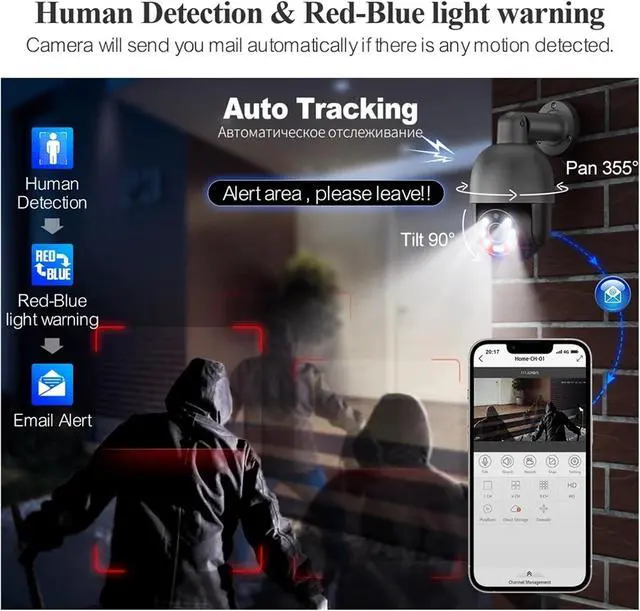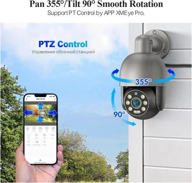 This camera system is equipped with PTZ (Pan/Pitch/Zoom) and supports 360° rotation to cover every corner of your home. Whether it's monitoring every detail of the yard or seeing movement