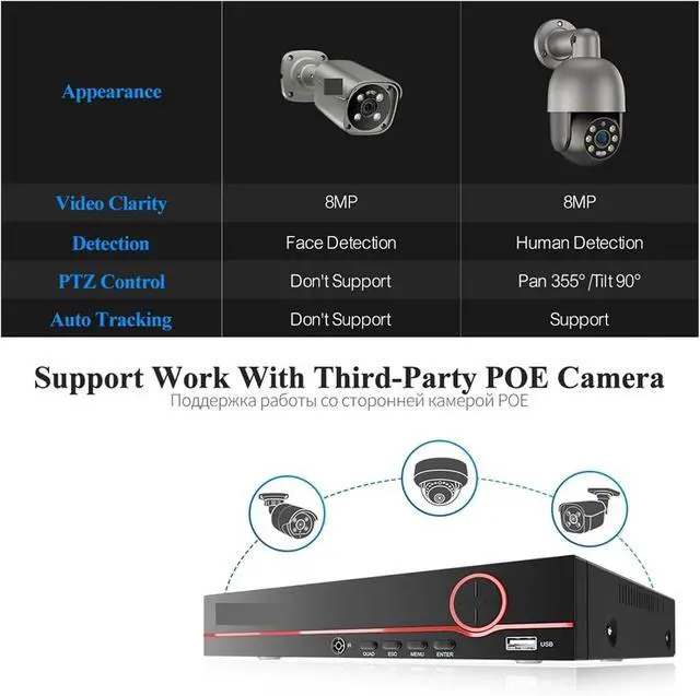 This 8CH 4K UHD 8MP PTZ surveillance camera system delivers stunning ultra HD 8MP resolution, ensuring that you will be able to capture clear pictures at all times. Day or night, details such as license plate numbers, facial features or other key information can be seen at a glance. Imagine being able to clearly see every visitor coming in and out, making your home safe and secure.