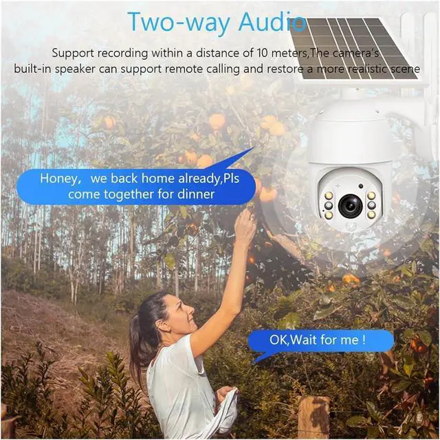 Built with efficient solar panels, this camera absorbs solar energy during the day to provide a steady stream of power support, saying goodbye to the trouble of frequent charging. Whether it is cloudy or sunny, you can use it with confidence to ensure 24-hour uninterrupted monitoring and keep your home safe.
