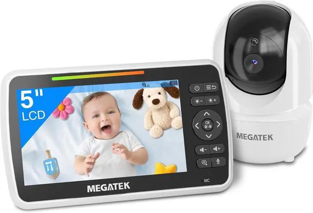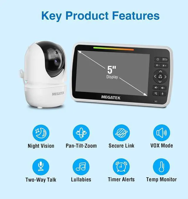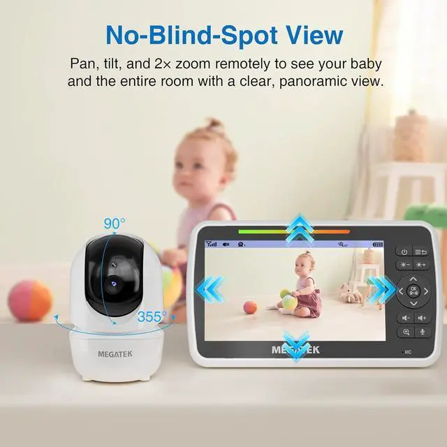 5" Large Screen with Pan-Tilt-Zoom Live Video: Monitor your baby in real time on a clear 5" color display. Remotely pan, tilt, and zoom the camera to see every angle of the nursery without moving the unit.