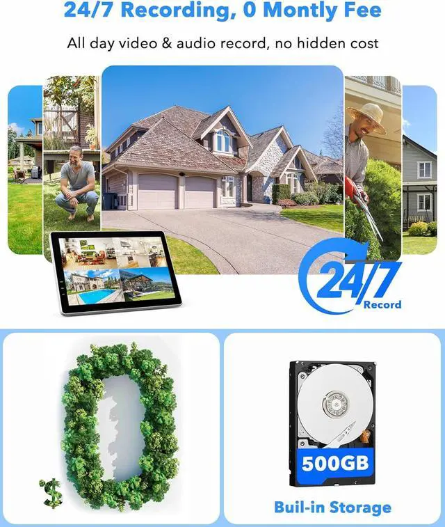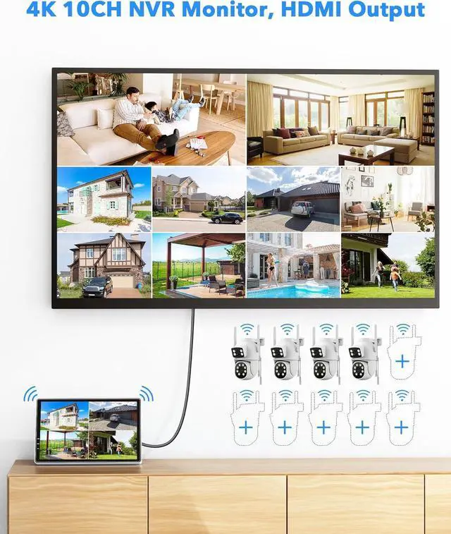 Enhanced Wireless Connectivity: Wireless outdoor security camera connection to NVR monitor improves camera connection stability and avoids security blind spots caused by WiFi dropouts or insufficient WiFi coverage. No need call in a specialist to run the cables, easily install surveillance camer