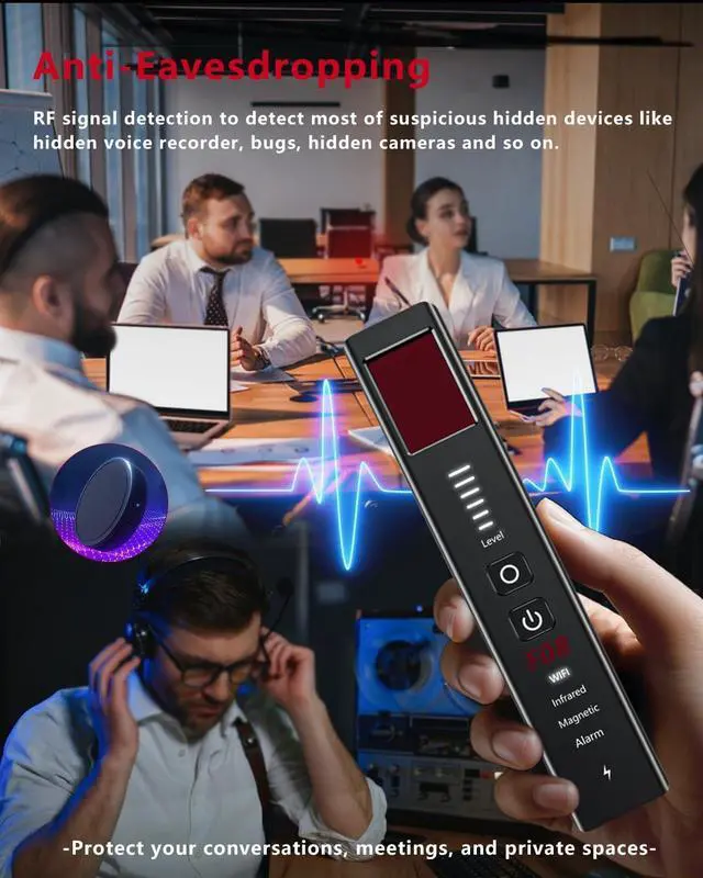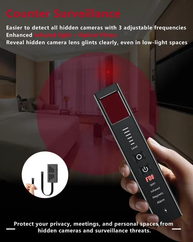 All-in-One Privacy Protection with Real-Time Alarm: Combining advanced signal, infrared and magnetic detection technologies, this 6-in-1 hidden cameras and bugs detector instantly detect spy cameras, GPS trackers, bugs, and more. The built-in vibration intrusion alarm alerts you immediately when someone touches your door, bag, or personal itemsideal for travelers and women seeking peace of mind
