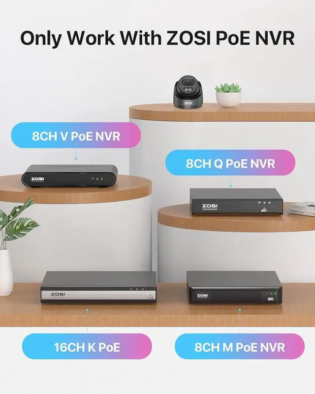 (1). [ Simplified PoE Setup ]__ Enjoy stress-free installation with the C220 4MP 2.5K PoE security camera and ZOSI 16CH 4K 8MP PoE NVR. A simple PoE connection eliminates the need for separate power cables, making this setup ideal for DIY enthusiasts.