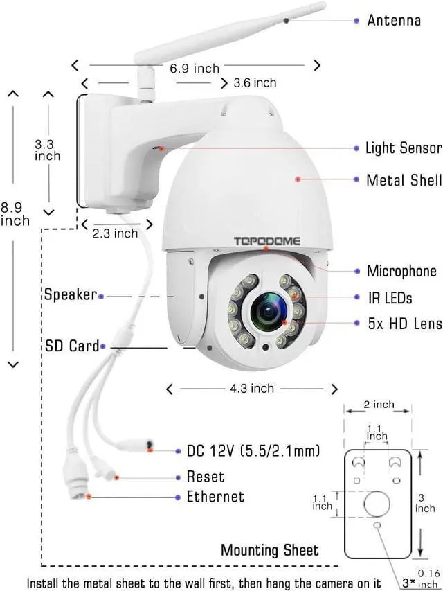 [ HD 5MP & Pan Tilt Zoom ]: This ptz camera outdoor built-in a 5MP low-Lux image sensor, can set a max resolution at 2560x1920@25fps. This pan tilt zoom IP Camera has a 2.7-13.5mm optical lens with auto focus, supports 335° of horizontal rotation, 120° of vertical rotation, and 5x optical zoom