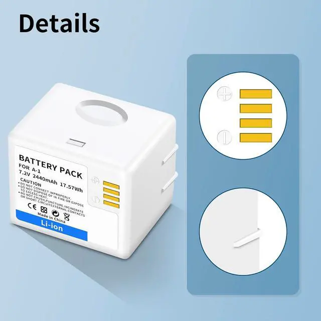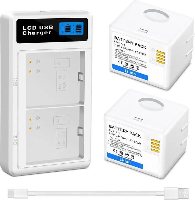Battery SpecificationsBattery Model: The A-1 A-1B A-1C Battery is designed with the upgrade capacity 2440mah/17.57Wh, High capacity and quality cells batteries Can Prolong battery life. We recommend charging battery with our charger, when charging the battery inside the camera, use a power cable/adapter that provides at least 5V 3A. A regular 5V USB cable doesn't have enough voltage for charging.