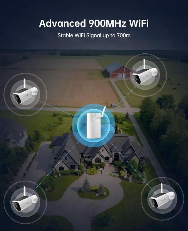 Ultra-Long Range Signal up to 700m Powered by 900MHz low-frequency WiFi, this system delivers stronger wall penetration and stable connection where traditional WiFi cameras fail. Ideal for store, warehouses, villa, large properties and outdoor.