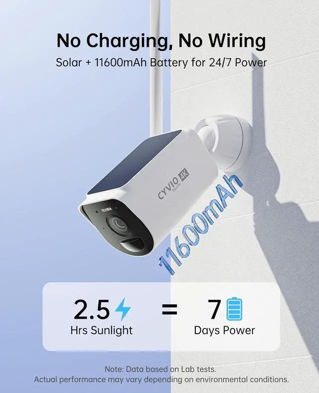 Set It and Forget It Built-in solar panel + 11600mAh battery keep your cameras running year-round. No wiring, no frequent charging, perfect for outdoor use.