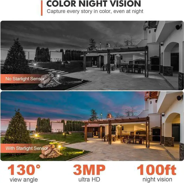 [2K HD & Color Night Vision & 2-Way Audio & Family Sharing] 3mp (2048 x 1536) wireless camera outdoor captures color sharp images up to 100ft even in the pitch dark. With an advanced noise reduction mic and speaker, front door camera ensures a crystal-clear online interaction. Chat with guests or couriers from anywhere, anytime! The Family Sharing allows 5 accounts to live view, control or receive alerts from outdoor camera wireless. Add limitless cameras, manage all in Dzees app effortlessly.