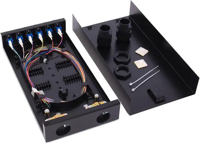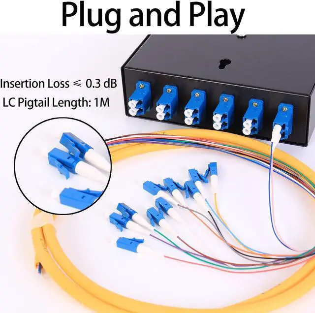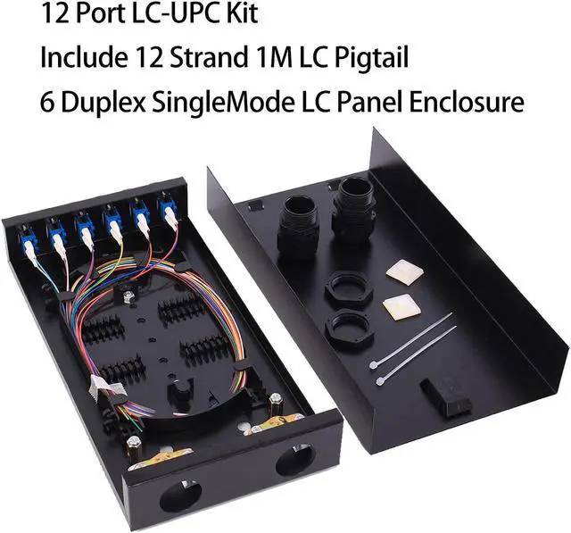 6 Duplex LC-UPC KitWall Mount Fiber Enclosure with Spool 12 Strands 1 Meter LC Pigtail, Fiber Type SingleMode 9/125; Different types of connectors and different lengths can be selected,thus flexible Protect and organize fiber connections, Standards Conformed to: YD/T926I; SO/IEC 11801;TIA/EIA-568-B.