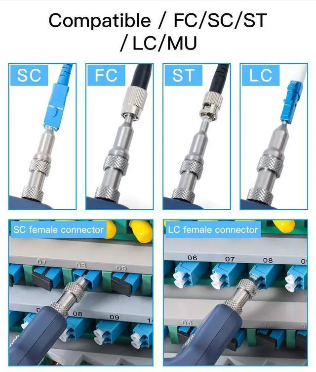 [ Compatible / FC/SC/ST/LC/SC female connector/LC male connector; 1/3 inch sensor; 300,000 effective pixels; The machine adopts micro USB interface, charging standard is 3.7v, charging is more convenient and simple.]