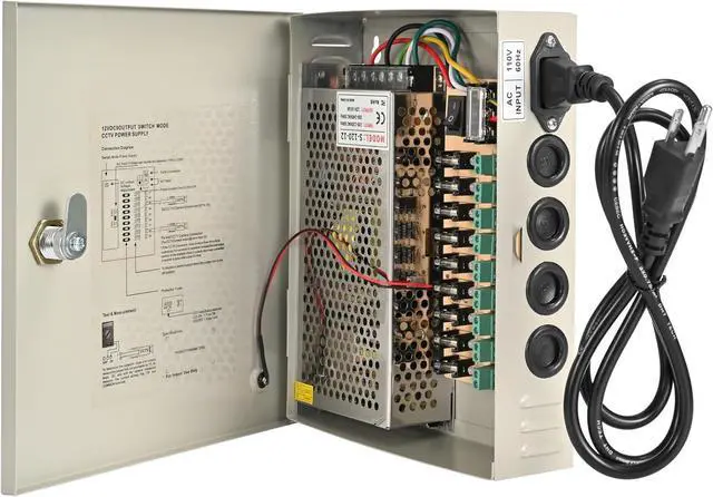 Easy Installation with AC Input Plug-and-play design with built-in AC power cord makes setup simple. Suitable for offices, shops, warehouses, and home security systems needing centralized power.