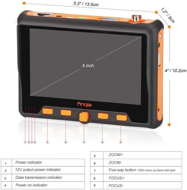 5-inch high-definition screen display, hand-held hook, easy and convenient, long-life lithium-ion polymer battery, can be used normally after charging for 4 hours, USB 2.0 interface provides 5V / 1A emergency power output, it can even be used as emergency mobile power (Only for Android phones)