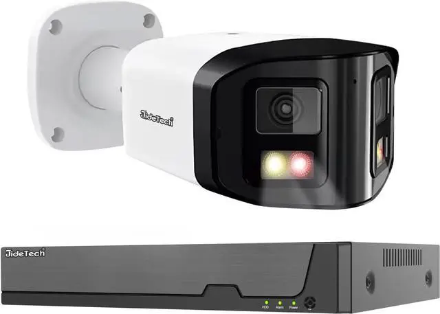 4K UltraHD Video & 180° Viewing Angle: JideTech 4K dual-lens security camera outdoor with 2xF1.6 super apertures and 2x 1/2.7 inch CMOS sensors, combine two adjacent scenes into one, provide a 180 degree view. With 2×2.8mm lens (2x4MP), it can provide 4096×1944@20fps smooth high-definition image quality, ensuring every tiny detail is captured. ideal for your backyard or driveway.
