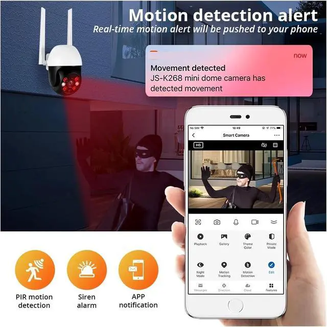 This 5MP WIFI surveillance camera gives you exceptional clarity, allowing you to easily capture every detail, day or night. The detailed picture makes every visitor, vehicle, and even distant activities clearly visible. Users have said: "high-definition picture quality allows me to see every small detail, is definitely the security of the home!"