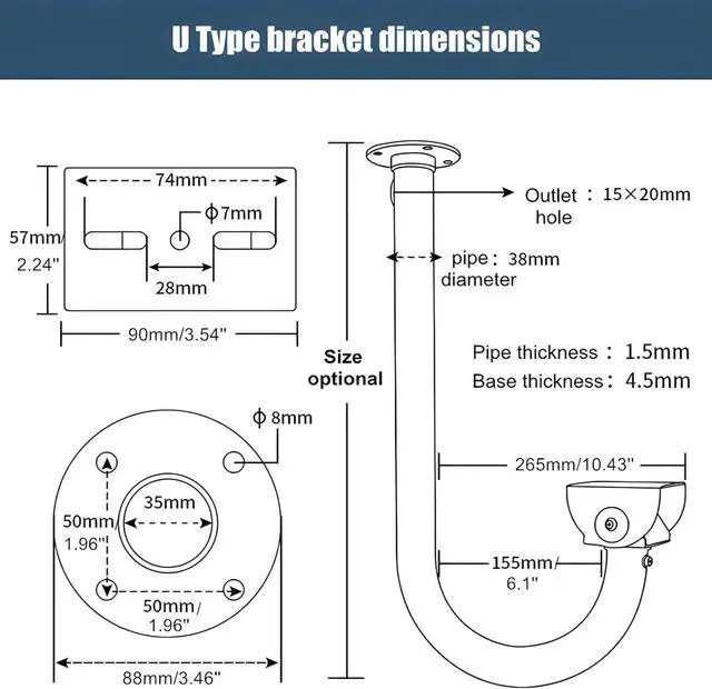 Packaging: 1pcs U-shaped camera bracket; Warm prompt: Camera is not included in the package. Disclaimer: The size is manually measured by hand, and there may be an error of 1-3MM.