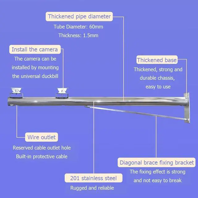 Stainless Steel Camera Mount: Our monitor mount is made of thickened stainless steel to withstand strong outdoor winds and prevent shaking, ensuring the stability of your surveillance equipment. It provides the optimal solution for a variety of security scenarios!