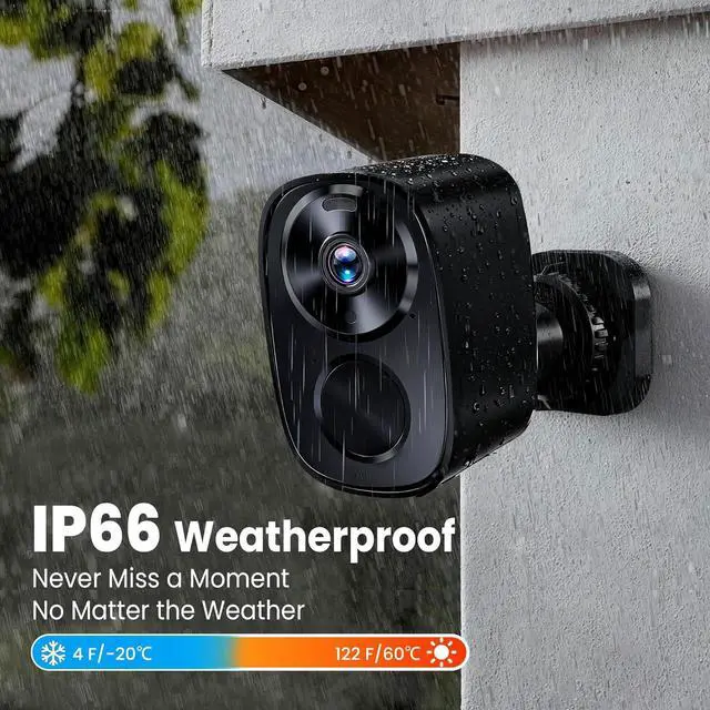 IP66 All-Weather Protection for Any Environment Built to handle heavy rain, snow, heat, humidity, and dust. Whether its mounted on a fence, garage, front door, or backyard tree, this outdoor camera works flawlessly year-round.