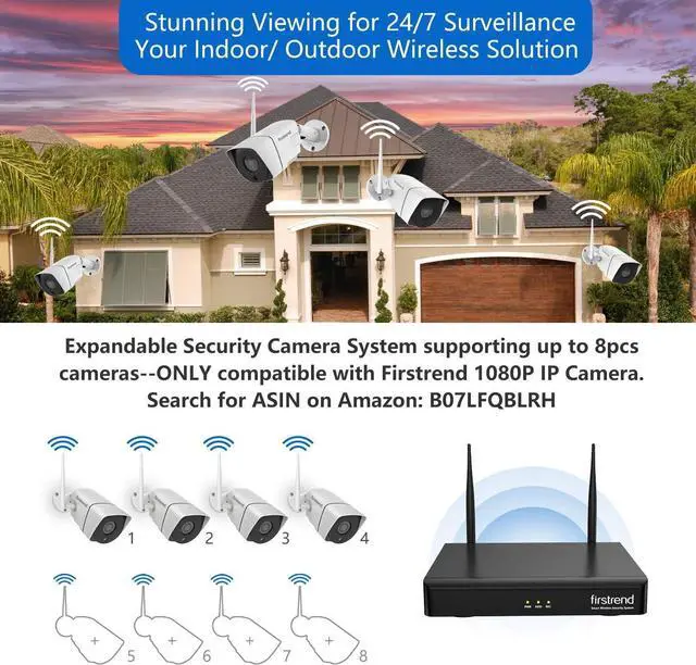 REMOTE MONITORING AND PLAYBACK: firstrend wireless security camera system is totally compatible for your mobile (Andriod and iOS System), tablet and PC. APP can be download to remote view and playback recordings (Please make sure NVR is connected to your router by Ethernet cable). It also support Sync-playback,Video Backup and Motion detection. Email alert or App alert will be sent once motion got triggered (Noted: Please Set it Up Properly to Avoid Email Blast).