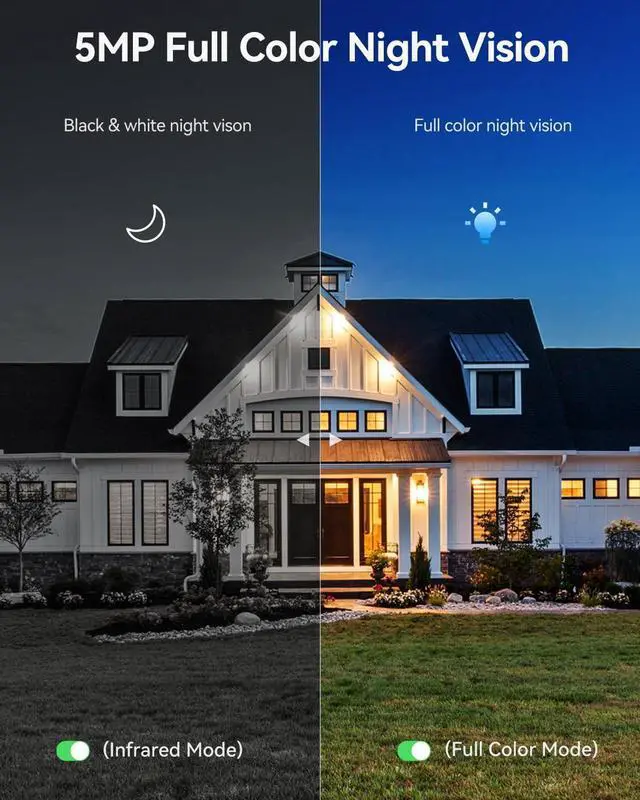 4K HD Resolution with Wide-Angle VisionThe LongPlus bullet security cameras are equipped with a 1/2.7" CMOS digital image sensor and an 5MP resolution, capturing ultra-clear hd footage to ensure every detail is visible. With a 2.8mm focal length lens providing a 132° diagonal field of view, the camera offers comprehensive area coverage. Additionally, the f/1.6 fixed aperture enhances light sensitivity, delivering sharp and detailed video even in low-light conditions up to 100ft.