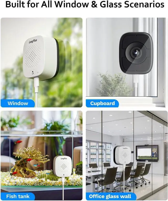 LongPlus window security camera uses strong magnetic adsorption and can be installed within 60 seconds. It can be torn off without leaving any glue, and you can change different window or glass scenes at will.