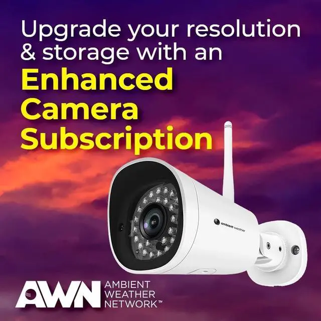 Includes (1) 2K/ 4MP, IP66 weatherproof camera with DC adapter Wide angle digital zoom & night vision capture clear images Share images and video to the Ambient Weather Network community Camera Dimensions: 4 x 3 x 2.75 inches DC adapter included