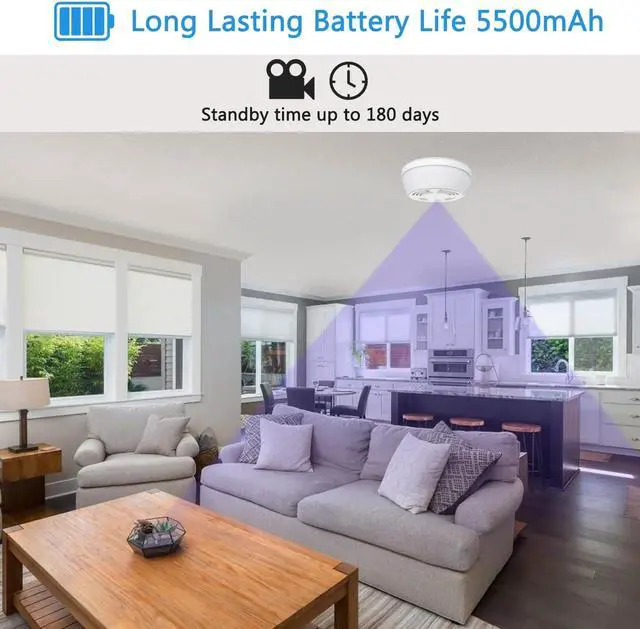 The camera has a built-in high-capacity 6000 mAh battery. When fully charged, you can save up to 20 hours of continuous video or stay on standby for up to 160 days. (Standby time depends on the number of motion activations and live view time.) Even when traveling for long periods of time, you don't have to worry about running out of battery capacity. It requires no wiring, so it won't arouse any suspicion. The camera is equipped with a non-illuminated night vision light, so you can save HD video even at night.