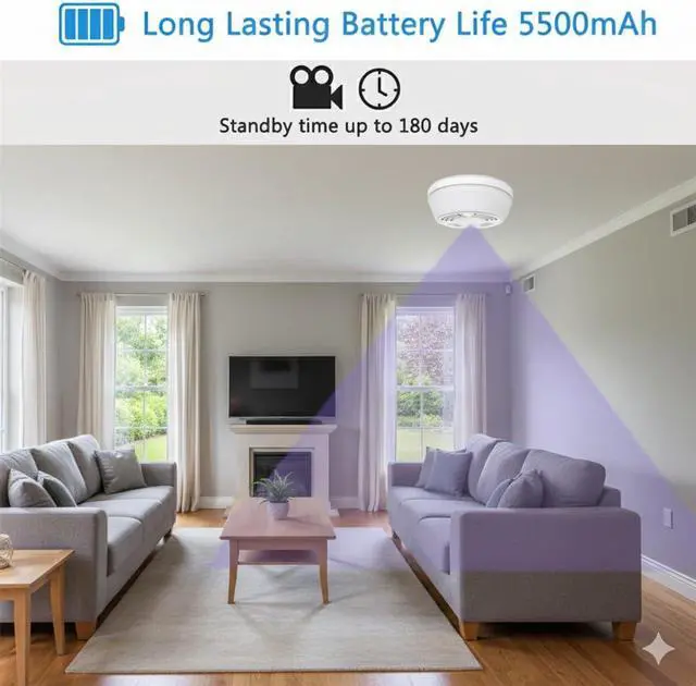 Stay Protected with 160-Day Battery Life & HD Night Vision Long-Lasting 6000mAh Battery Enjoy true peace of mind with a high-capacity 6000mAh rechargeable battery. On a single charge, get up to 160 days of standby time or 20 hours of continuous recording. The camera intelligently enters power-saving mode when no motion is detected, ensuring its ready when you need it most. No messy wires and no frequent chargingjust reliable, long-term security for your home or office.