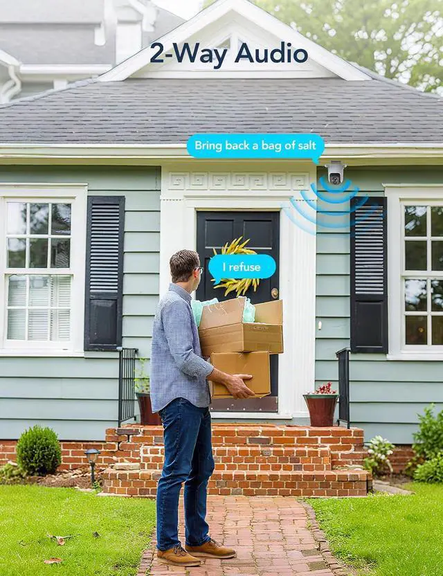 Two Way Audio Communication Built-in microphone and speaker allow real-time communication through the camera. This feature enables you to speak with visitors, monitor property activity or deter unwanted intruders remotely