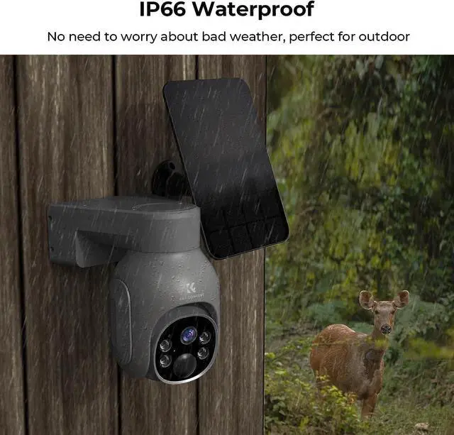 Continous Power from High Capacity Battery & 4W Solar PanelThis 4G LTE cellular security camera built-in 9600mAh large capacity battery and solar panel, provides non-stop power anytime. In addition, 100% wired-free, no WiFi needed, IP66 waterproof and robust body, ideal for wild areas, barns, ranches, jobsites, cabins, etc.
