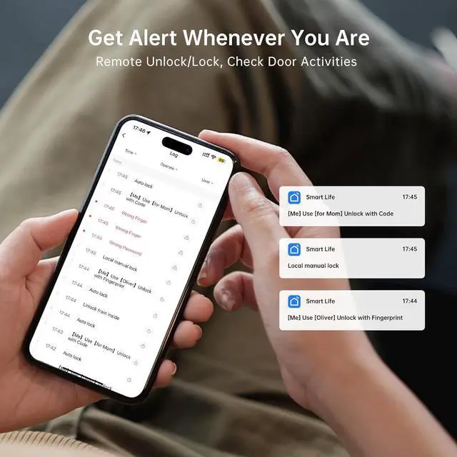 Remote & Voice Control: This smart lock features remote unlocking and locking (Includes a gateway that requires 2.4GHz WiFi), allowing you to remotely control and monitor your locks from anywhere, anytime via your phone, generating one-time or permanent passcodes for visitors. You can also control the lock with your voice by connecting to Alexa/google assistant.