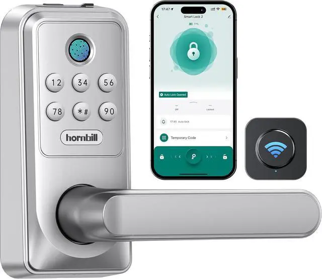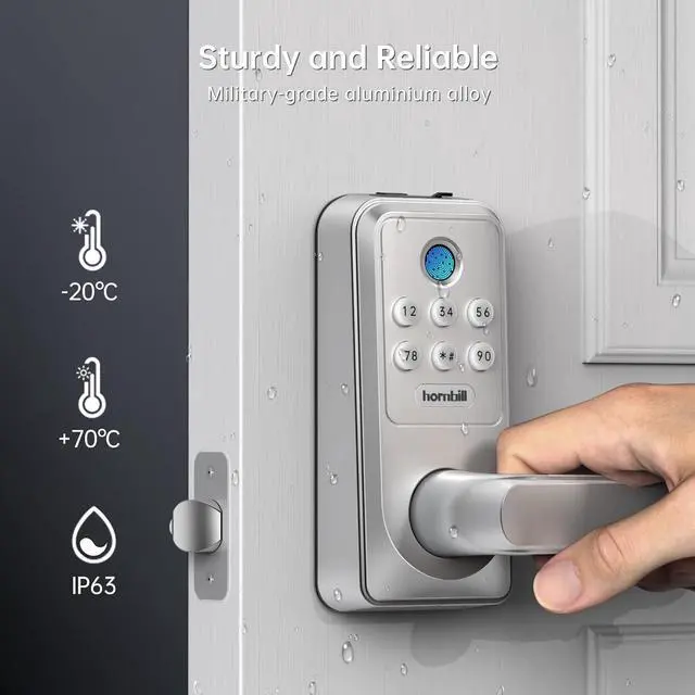 Multi-Function WiFi Lock: Hornbill smart Lock with handle has fingerprint, "Smart Life App", password, bluetooth, and WiFi unlocking methods to provide you with more choices. It also features auto-lock, anti-theft alert and more. Privacy lock and anti-theft code mode ensure your property safety. Suitable for exterior doors, bedrooms in homes, resorts, Airbnb apartments.