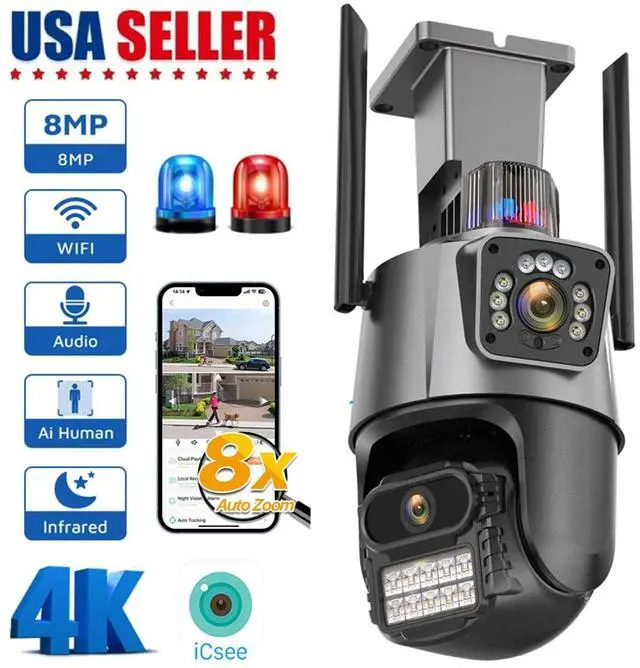 Dual Lens 4K WiFi Security Camera 8X Zoom Outdoor Home Night Vision CCTV PTZ US