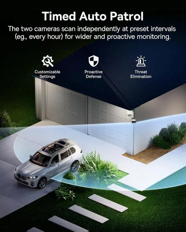 [Split-Screen Dual-Zone Monitoring & Timed Auto Patrol] Baseus home security camera watchs 2 areas simultaneously with sharp split-screen view; Timed patrol mode lets dual cameras rotate preset intervals for proactive, 24/7 home protection.