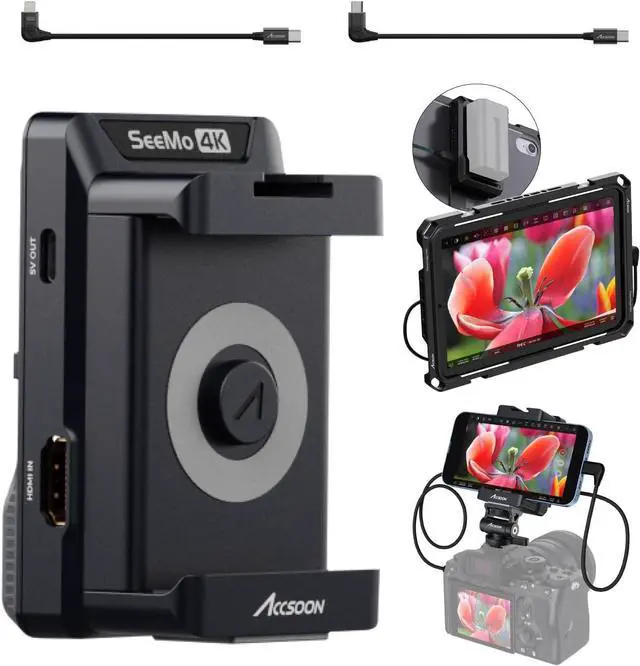 Wide Compatibility: Accsoon SeeMo 4K is compatible with i-Phone 17 · 17 Pro · 17 Pro Max · 16 · 16 Plus · 16 Pro · 16 Pro Max · 15 · 15 Plus · 15 Pro · 15 Pro Max · 14 · 14 Plus · 14 Pro · 14 Pro Max · 13 · 13 mini · 13 Pro · 13 Pro Max · 12 · 12 mini · 12 Pro · 12 Pro Max · 11 · 11 Pro · 11 Pro Max · XR · XS · XS Max · X · 8 · 8 Plus, as well as 2025 new iPad models and other selected iPad models: 2025 11-inch iPad (A16) · 2025 iPad Air (M3) · iPad mini 2/3/4/5/6/7 · iPad Air/Air 2/Air 3/Air 4 · 12.9-inch iPad Pro Gen 2 · 12.9-inch iPad Pro Gen 1 · 10.5-inch iPad Pro · iPad 5/6/7/8