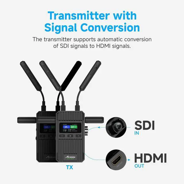 Signal Convert: CineView 2 SDI transmitter not just a video transmitter; It's also a signal converter. The video transmitter supports automatic convert SDl signal to HDMl signal Loop out. It means you can use the SDI signal from the camera to output it as an HDMI signal