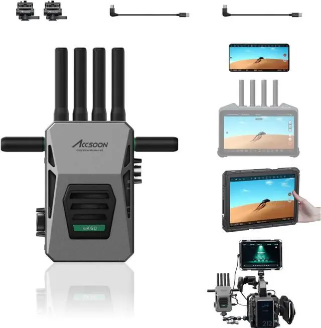 4K UHD Video Transmission: Accsoon CineView Master 4K wireless video transmission systems supports video input/output formats up to (3840x2160) 24/25/30/50/60 fps via HDMI port, and 1080P via SDI/ HDMI, perfect for monitoring, recording, live-streaming and any other video productions