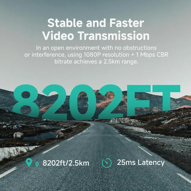 Faster, Longer, Stronger: CineView Master 4K HDMI SDI wireless video transmission system with an impressive transmission range of up to 2.5 km/8202ft, latency is so low, 1080P<25ms, 4K<35ms. It is stable with integrates 2.4GHz, 5GHz, 6GHz frequencies. The Transmitter and Receiver ensure seamless connectivity and superior performance