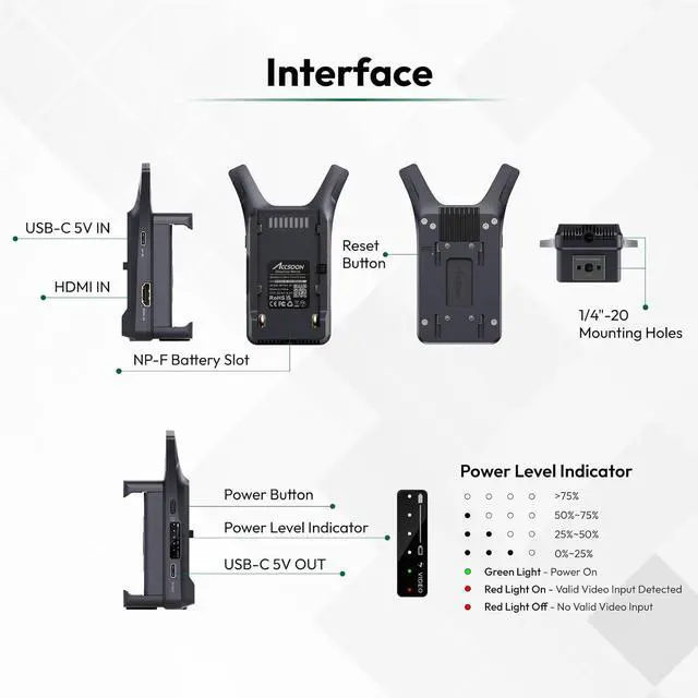 Wide Compatibility: This video transmission system is compatible with the camera RS2/RS3/RS3 Pro gimbals/Cameras/DSLR/switch. Any device capable of outputting a standard FHD HDMI signal can be connected to the Nano. You can also use Nano with Accsoon PowerCage in our shop