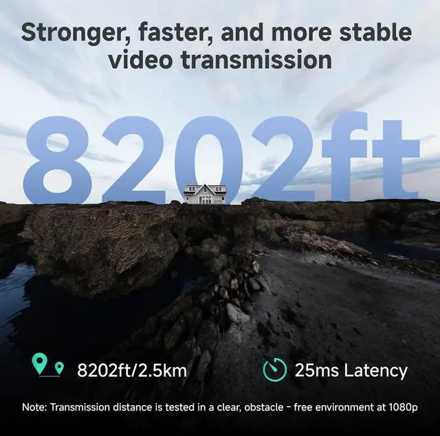 Powerful Master 4K: CineView Master 4K integrates 2.4GHz+5GHz+6GHz frequencies, enabling intelligent dynamic adjustment of audio and video data across three bands, significantly reducing latency from input to output to only 25ms while maintaining 2.5km long transmission distances. Note: Transmission distance is tested in a clear, obstacle-free environment