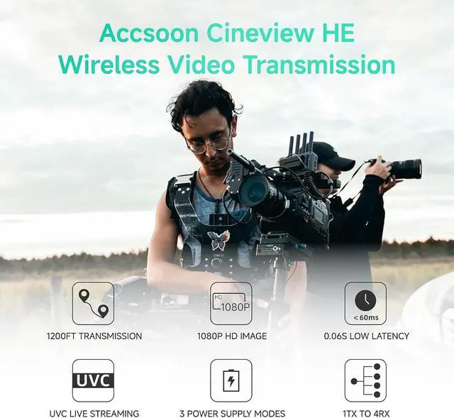 Versatile Applications: The Accsoon CineView HE transmitter and receiver are compatible with monitors, camcorders, cameras, DSLRs, TVs, personal computers, game consoles, and any devices supporting HDMI video output. They are ideal for various large-scale events and professional video production, including weddings, advertising shoots, musicals, TV dramas, short films, meetings, interviews, live streams, football matches, vlogging, and other live broadcast settings