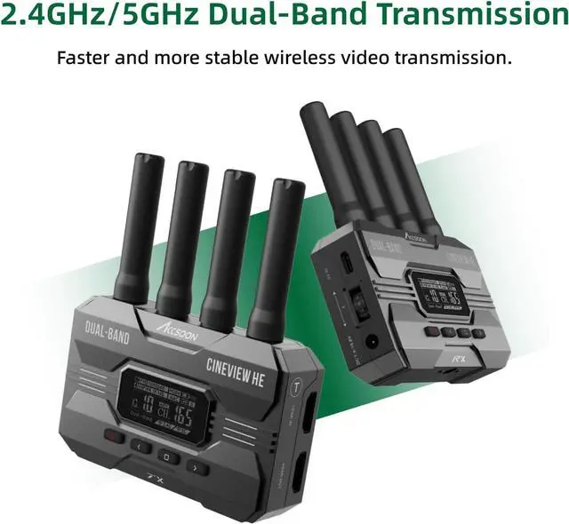 Dual-Band Stability: Featured 2.4GHz and 5GHz Dual-band transmission, Accsoon CineView HE can simultaneously stream video via 2.4 GHZ and 5 GHZ Wi-Fi at the same time, ensure interference-free connectivity up to 1200ft (350m) with <60ms latency for 1080p60fps video and audio, bringing stability to the wireless video transmission system